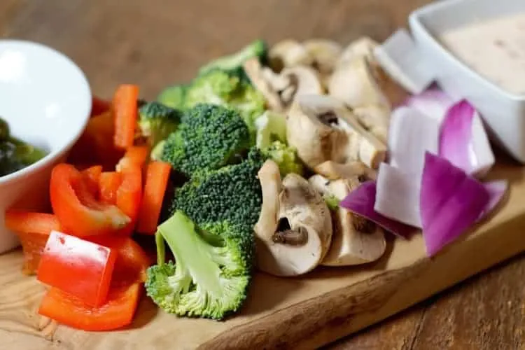 Neben dem Fleisch ist es auch üblich, verschiedene zubereitete Gemüse zu servieren, die in Öl oder Brühe gegart werden können. Im Prinzip eignet sich jede Art von Gemüse für ein Fondue, wobei festes Gemüse, das schnell gart (wie Paprika, Pilze, Brokkoli und Spargel), bevorzugt wird. Denken Sie daran, es muss auf einem Spieß bleiben!