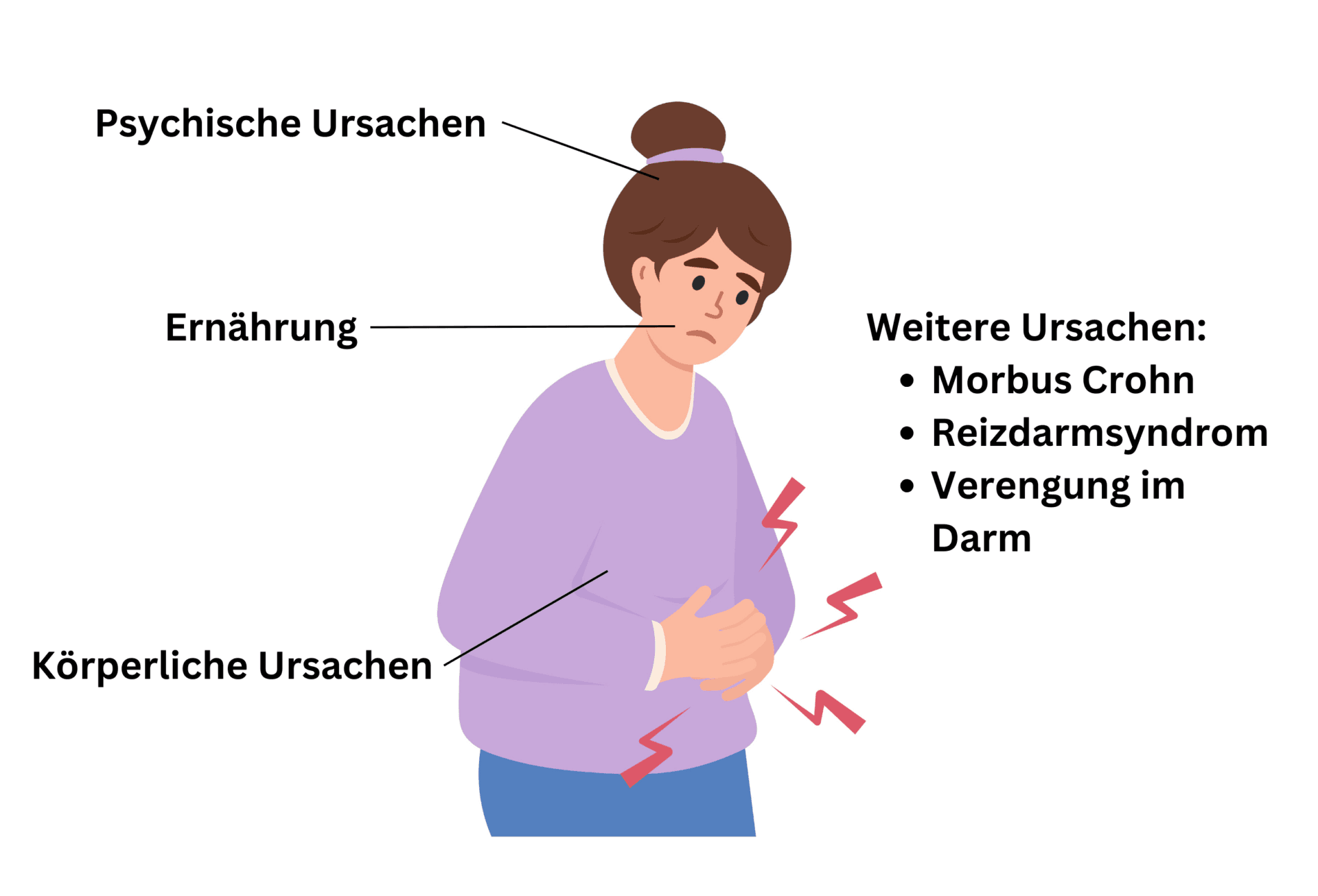 Ständige Blähungen können ein Symptom einer zugrunde liegenden Erkrankung sein. Dazu gehören chronische Verstopfung, Reizdarm, Reizmagen, Nahrungsmittelunverträglichkeiten, Magen-Darm-Infekte, entzündliche Darmerkrankungen (Morbus Crohn, Colitis ulcerosa), Darmkrebs, Erkrankungen der Bauchspeicheldrüse oder der Galle sowie Lebererkrankungen wie Leberzirrhose. Zur Abklärung der Ursachen wird man in der Regel an einen Gastroenterologen überwiesen.