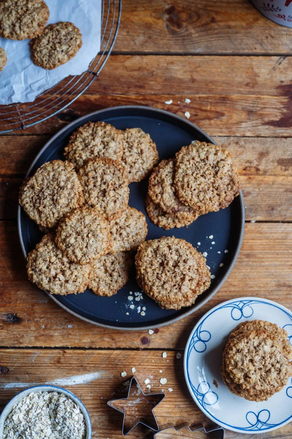Dieses Rezept kombiniert die rustikale Textur von Haferflocken mit der wärmenden Note von Zimt. Das Ergebnis sind dünne, goldbraune Kekse, die auf der Zunge zergehen. Die Zubereitung ist denkbar einfach: Teig zusammenrühren, auf das Blech geben und ab in den Ofen. Ganz ohne Ausstechen oder aufwendiges Verzieren.
