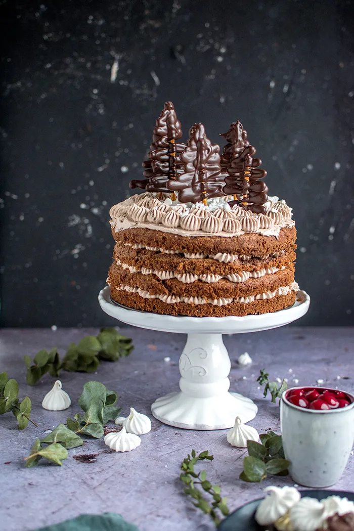 Geschichtete Lebkuchen Sahne Torte im Naked-Cake-Stil