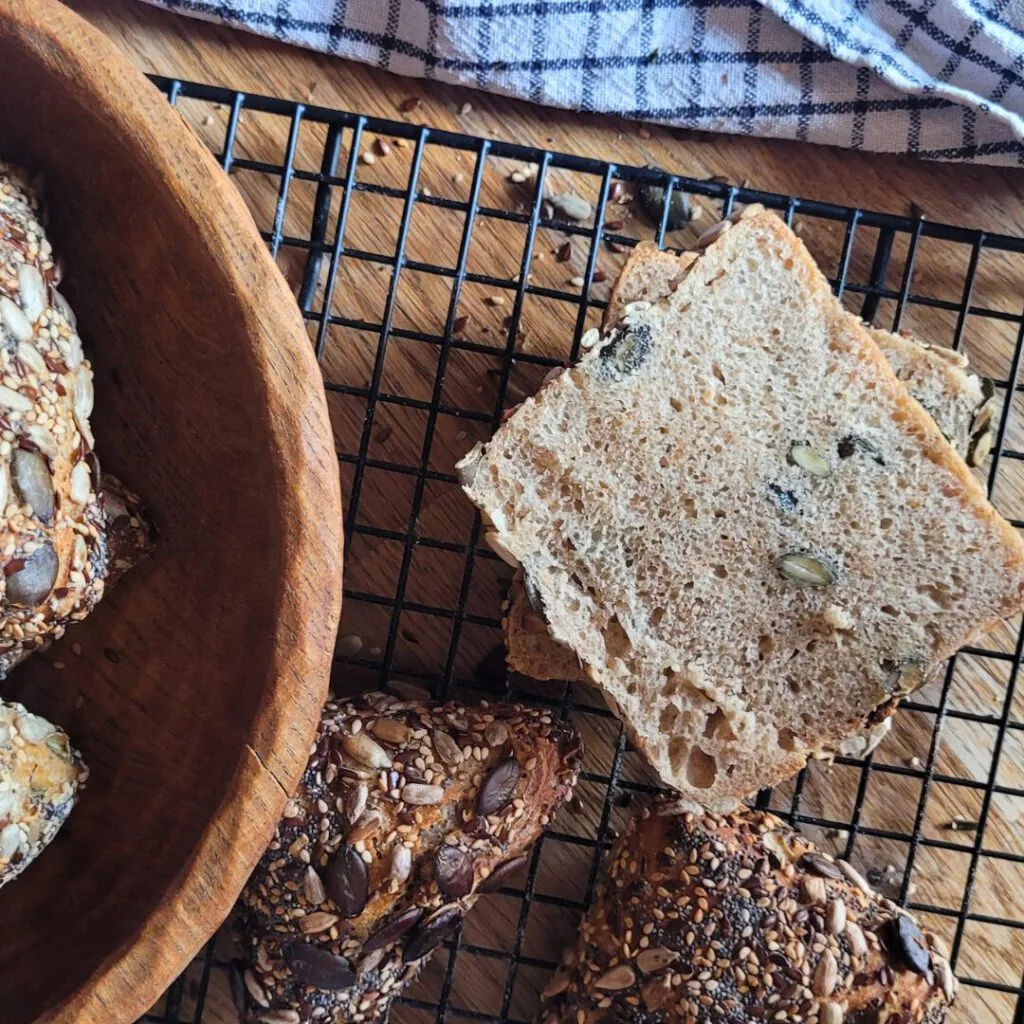 Gericht: Brötchen mit Sauerteig, Körnerbrötchen mit Sauerteig, Mehrkorn Brötchen mit Sauerteig, Sauerteig Brötchen, Vollkornbrötchen