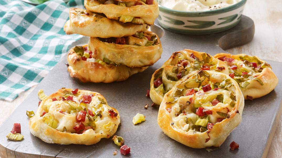 - Pizzaschnecken und Flammkuchen-Taschen: Diese herzhaften Backwaren sind der Hit bei Groß und Klein. Sie sind schnell zubereitet, vielseitig füllbar und perfekt zum Teilen. Ob als Flammkuchen-Schnecken oder herzhafte Flammkuchen-Taschen – sie sind ideal als Partysnack oder Happen für zwischendurch.