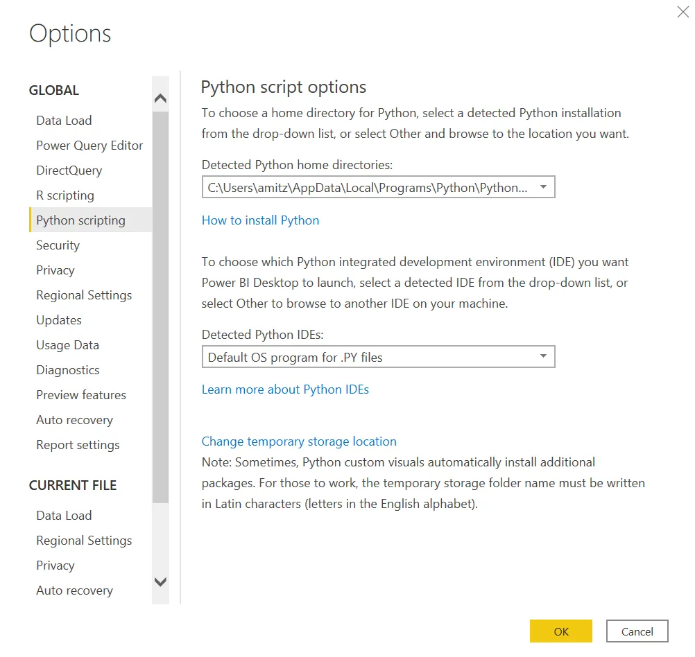 Um diese Methode anzuwenden, benötigen Sie eine funktionierende Python-Installation auf Ihrem System, die mit Power BI konfiguriert ist. Dies beinhaltet die Installation notwendiger Python-Pakete wie pandas und, falls noch nicht vorhanden, die Aktivierung von Python-Skripten in Power BI.