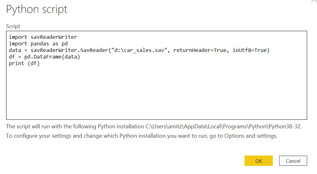 Schritt 3: Daten aus SPSS mit einem Python-Skript in Power BI abrufen