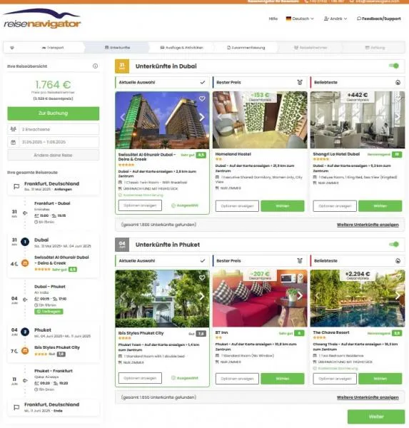Am Ende sehen Sie Ihre vollständig zusammengestellte Reise mit dem Endpreis.