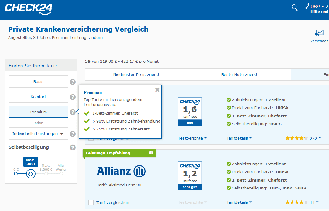 Auf unserer Info-Seite zur Tarifnote können Sie genau nachlesen, welche Kriterien im Detail bewertet werden und wie die CHECK24-Note berechnet wird, um volle Transparenz zu gewährleisten.