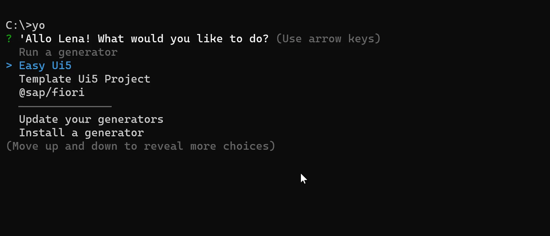 npm install --global generator-easy-ui5Sie können die Installation überprüfen, indem Sie yo aufrufen und nach “Easy-Ui5” in der Liste der Generatoren suchen.