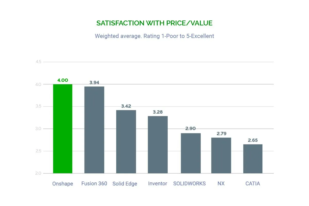 Unsere Branchenumfrage zeigt deutlich: Nutzer von Cloud-basierten Lösungen empfehlen diese mit mehr als doppelt so hoher Wahrscheinlichkeit weiter wie SOLIDWORKS-Nutzer. Dies ist ein starkes Indiz dafür, dass der wahrgenommene Wert und die Zufriedenheit mit der Gesamtlösung bei modernen, flexiblen Systemen oft höher sind.