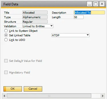 Alt: Verknüpfung eines benutzerdefinierten Feldes (UDF) mit einer Validierungsregel aus einer benutzerdefinierten Tabelle in SAP Business One