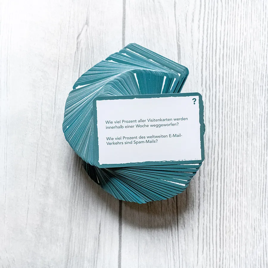 Ökofuzzi – das Umweltquiz ist für alle Branchen und Zielgruppen geeignet, vom Handwerksbetrieb bis zum multinationalen Unternehmen. Immer dabei, überall spielbar – auf Reisen, mit Freunden, mit der Familie. Innovativ, nachhaltig, selbsterklärend, hochgradig individualisierbar, großflächig bedruckbar, hoher Nutzen.