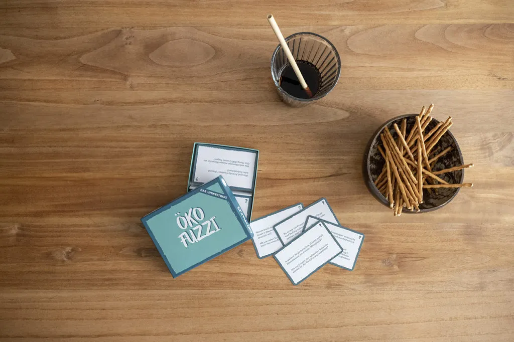 Ökofuzzi ist mehr als nur ein Spiel – es ist ein Türöffner für wichtige Gespräche über Umweltschutz und Nachhaltigkeit. Das Quiz besteht aus 100 Karten mit insgesamt 200 Fragen zu verschiedenen Themen wie Lebensmittel, Mobilität, Kleidung, Energie und Umwelt. Ziel ist es, Wissen zu vermitteln, zum Nachdenken anzuregen und den Prozess des Umdenkens in der Gesellschaft zu fördern.
