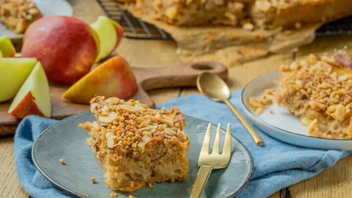 Weicher Apfelkuchen mit knusprigem Haselnusskrokant – der perfekte Herbstkuchen